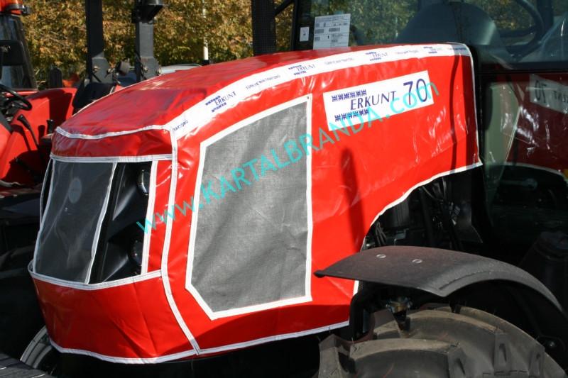 Erkunt 70 S Serisi Traktör kaportası için; EKSTRA KALİTE 1100 Polyester branda dan imal edilmiş traktör kılıfı.